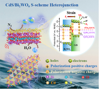 CdS/Bi2WO6 S型异质结压电催化实现高效氮还原和析氢反应的示意图